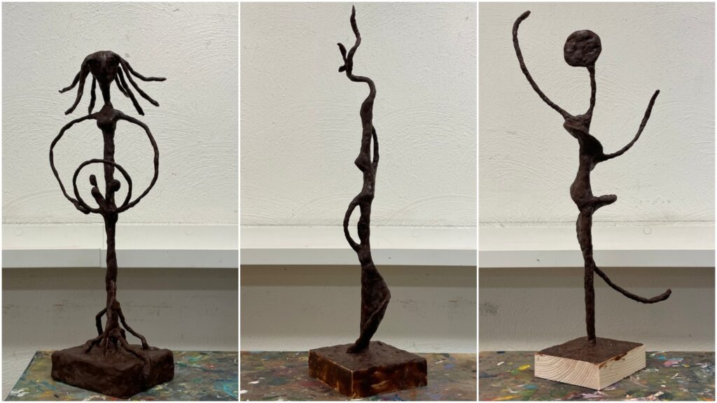 We werken met koperdraad en was in creëren zo een driedimensionale vorm. Het is de basis waaruit je zou kunnen bronsgieten.