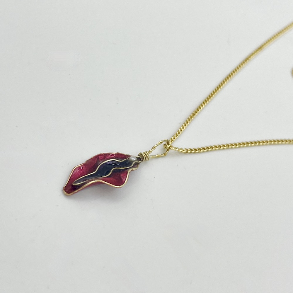 Deze dame is gemaakt van 14 kr gouddraad. Het helderdonkerrood met het diepe aubergine donkerrood verbonden.