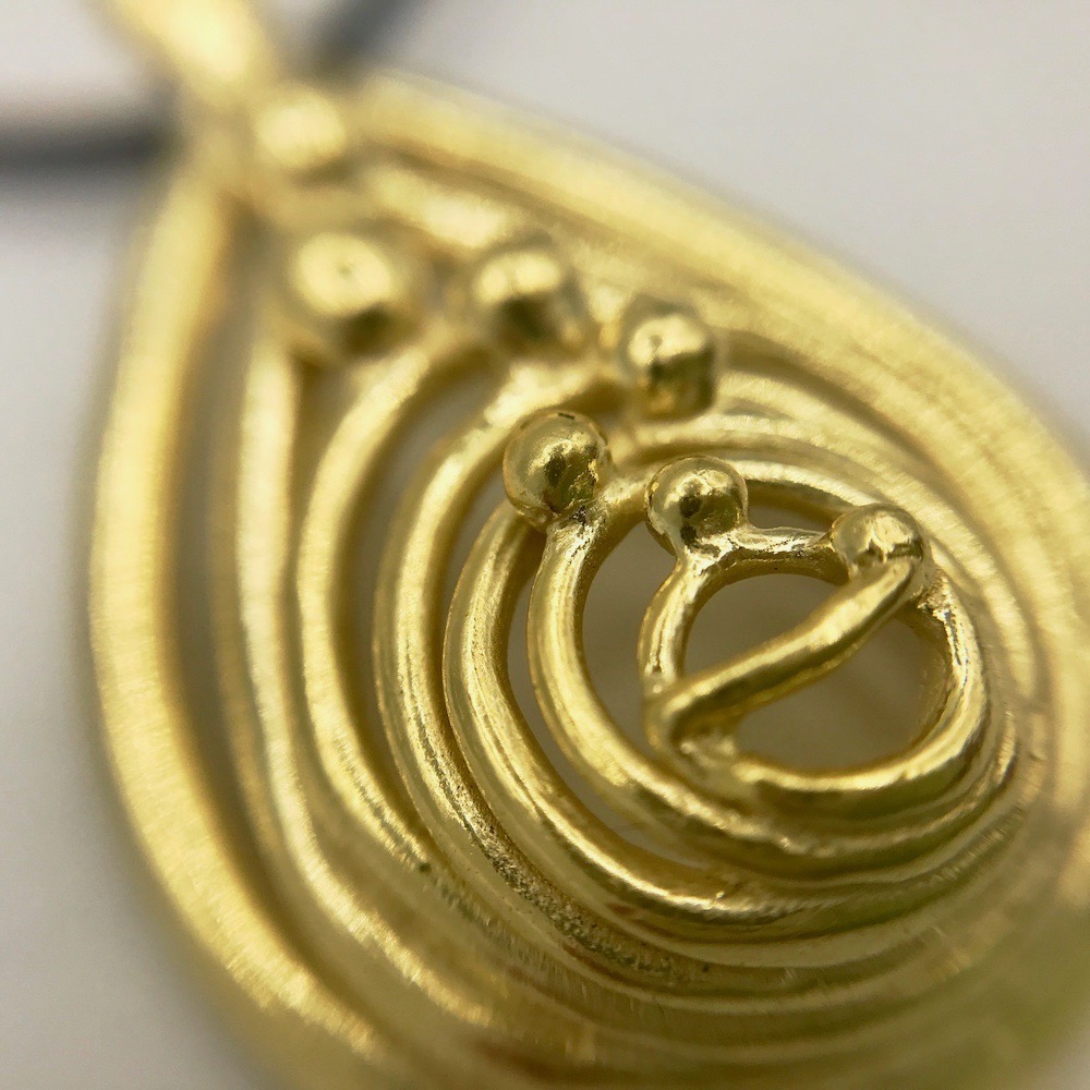 De hanger volledig in 18 kr goud laat ik alleen gieten op aanvraag, mail me om hier meer informatie of een prijsopgave in te ontvangen. Ook het gieten met oudgoud is mogelijk.
